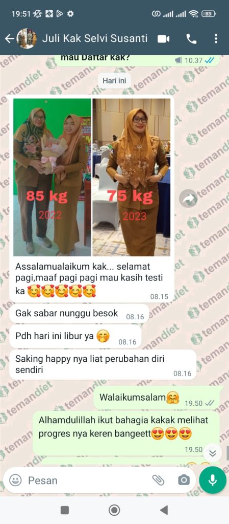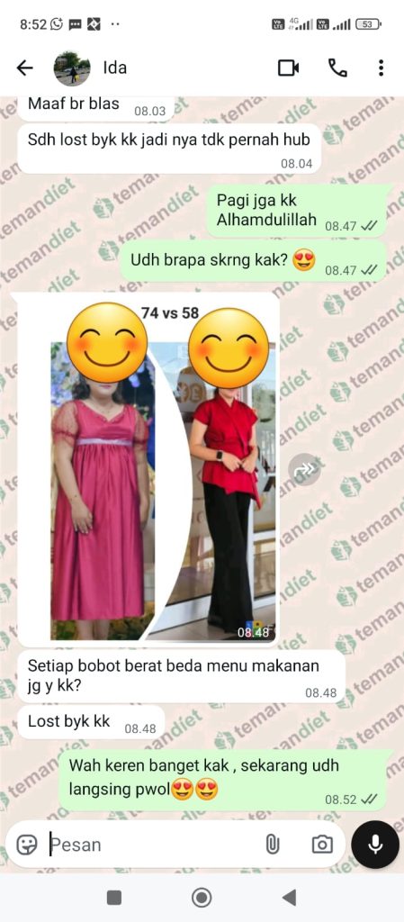 Dari total member kami sudah 95% berhasil menurunkan berat badan dan ini beberapa testimoni dari member kami :
